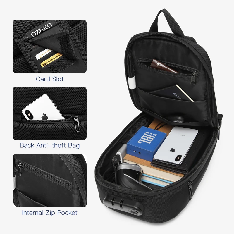 Check out our sale items OZUKO Men Anti-theft Crossbody Bags Male Waterproof USB Charging Chest Pack Short Trip Messenger Sl and enjoy free standard Shipping on